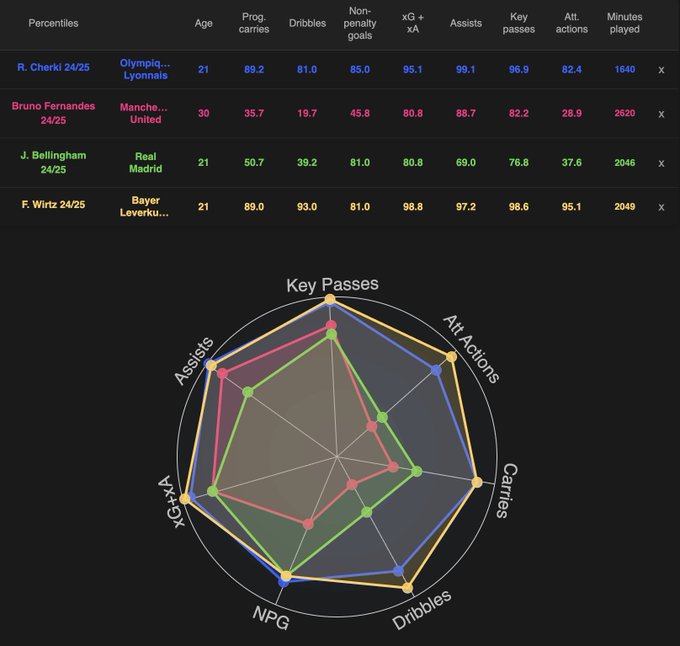 There are bargains in football, and then there’s Rayan Cherki—a player whose talent so wildly outpaces his £18.8 million valuation that it feels like a clerical error. In an era where Premier League clubs casually drop £50 million on unproven potential, Cherki’s situation is almost suspicious. Here is a 20-year-old with the creative output of Bruno Fernandes, the dribbling audacity of a young Wirtz, and the attacking numbers to rival Jude Bellingham’s early career—yet he remains stranded at Lyon, waiting for a club smart enough to take the gamble.