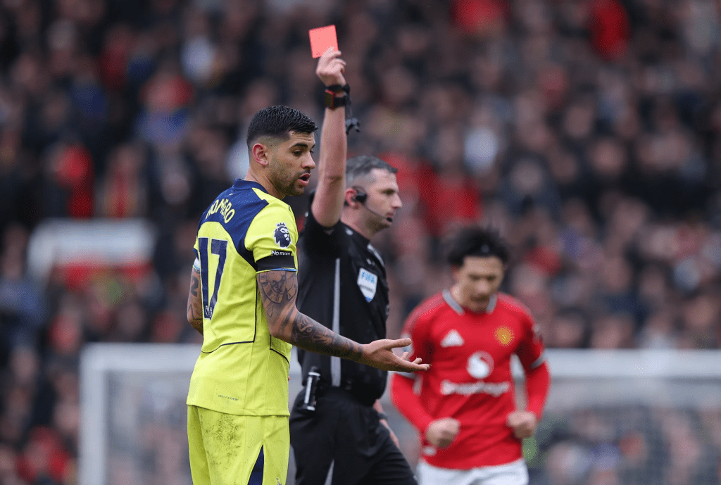 Romero. Yeah, you know what I’m about to say. A very dumb, nonsensical tackle on Casemiro happened right in front of the referee. It was feet high on the shin/ankle area. He didn’t get the ball and didn’t argue the decision much. That tells you everything about how fair the red card was. Ten men at 29 minutes, at home you knew we had to get the result now.