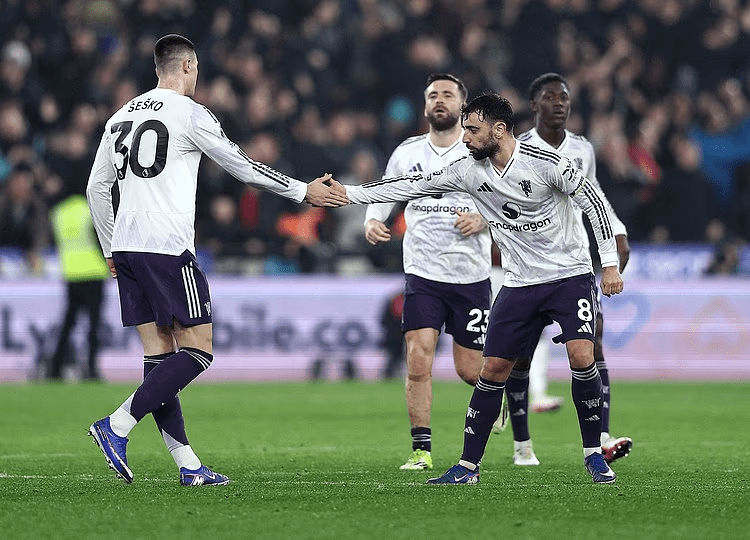 Finally, at 90+6, Amad got the ball. He passed to Mbeumo on the right wing. Mbeumo crossed it into the box, and it fell to Sesko. He finished it perfectly. An inch-perfect finish.