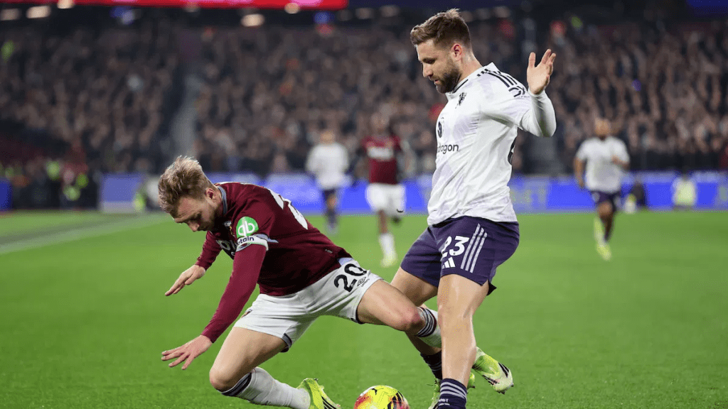 The perfect scenario? Shaw attacks the ball and clears it. instead, he waited for the bounce. Big mistake. Bowen won the ball, headed it to Soucek, got it back on the right wing, and put in a fast, low cross to the near post. Soucek put it in. 1-0 down to a relegation team.